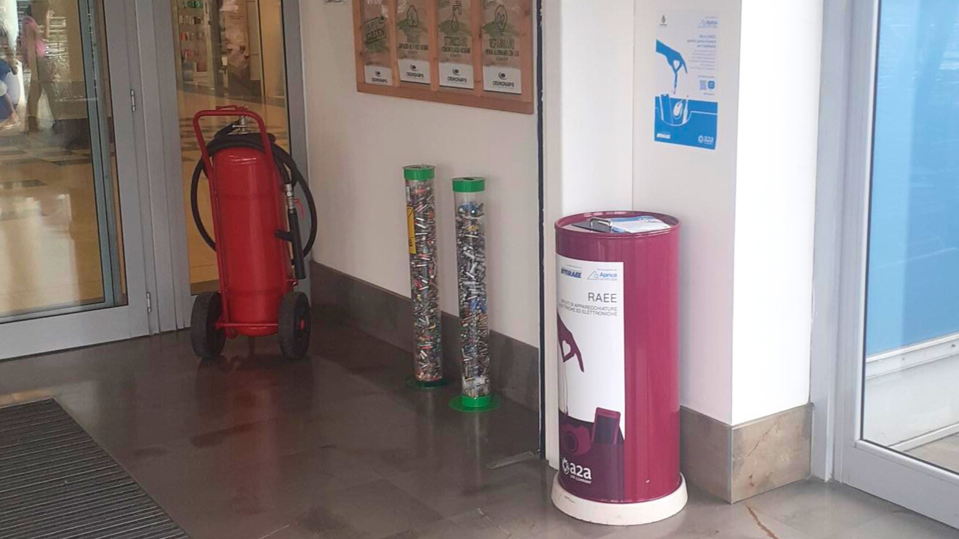 All’ingresso Est e Ovest del Centro trovi un contenitore dedicato alla raccolta dei micro RAEE.