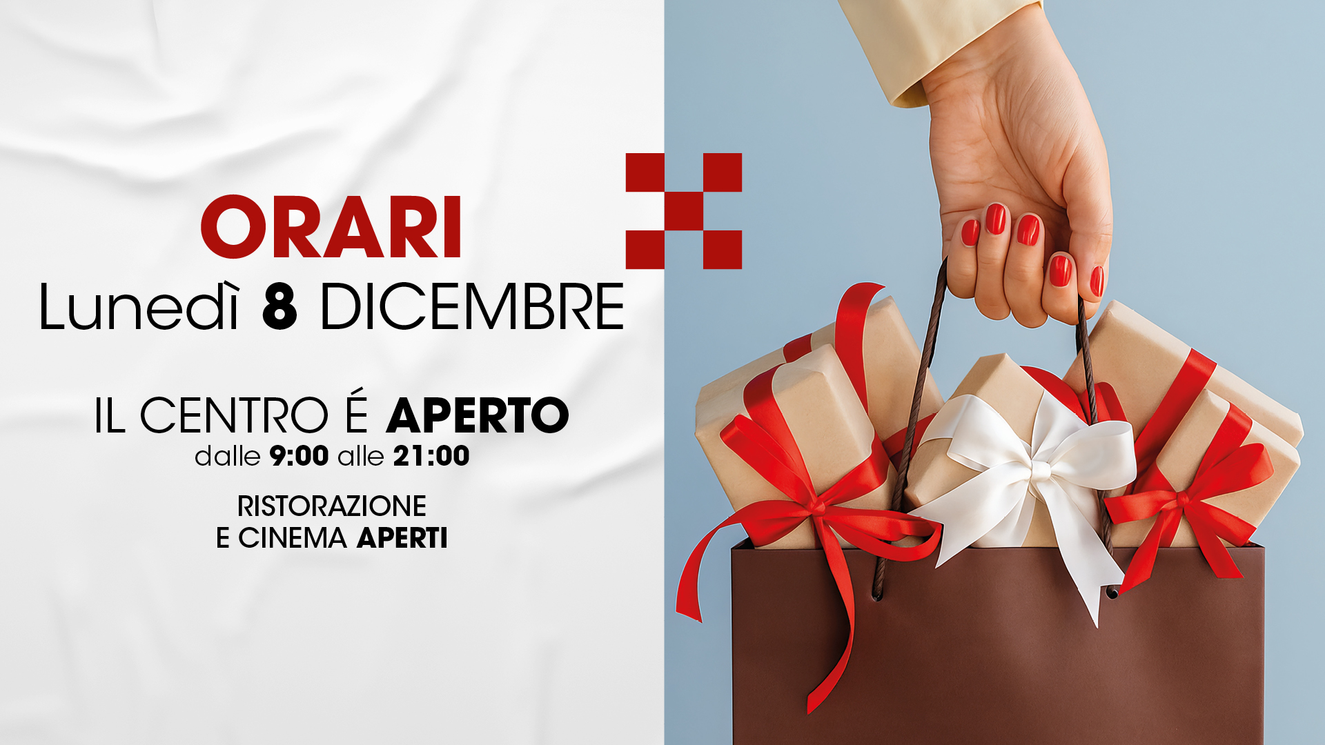 Lunedì 8 dicembre, il Centro sarà aperto con tutti i negozi, la ristorazione e il cinema pronti ad accoglierti per una giornata speciale.
